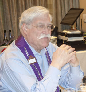Arriving members and guests were welcomed with a glass of Charles Heidsieck Champagne Brut Réserve NV from the bailliage’s cellar. This extraordinary wine is a blend of sixty Champagne crus including three pillars that define Heidsieck’s Brut Réserve style: grand cru chardonnay from the Côte des Blancs, grand cru pinot noir from the Montagne de Reims, and meunier from the Vallée de la Marne. Each cru is individually vinified mostly in stainless steel vats, with 5 to 10% vinified in old Burgundy oak barrels. The finished wine is 40% pinot noir, 40% chardonnay, and 20% meunier, blended with 50% reserve wines. The result is an elegant and complex Champagne with aromas ranging from brioche to red fruits to vanilla.
